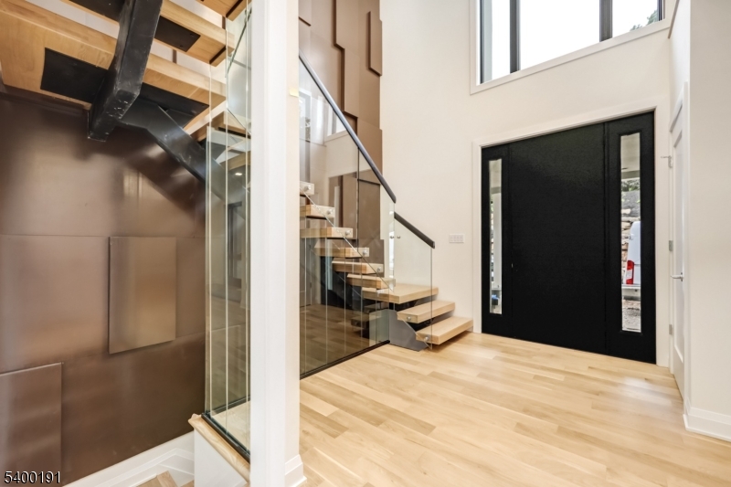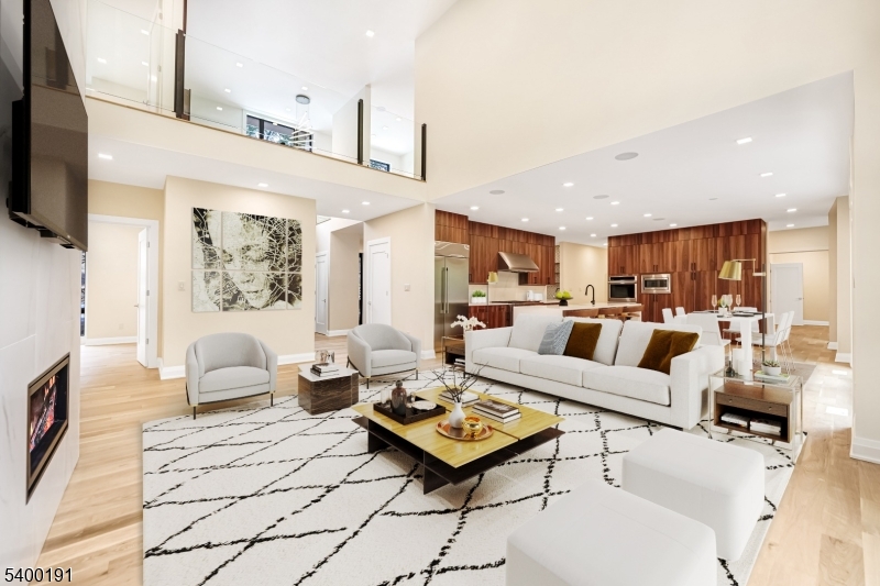 This striking two-story contemporary home greets you with a dramatic foyer featuring rich wood paneling, a sculptural lighting fixture, and a custom staircase with glass railings that set the tone for the elegant design throughout. The spacious Great Room, centered around a custom fireplace, flows seamlessly into a sleek, state-of-the-art kitchen with brand-new stainless-steel appliances. Large sliding doors lead to a generous patio with a second fireplace, perfect for refined indoor-outdoor entertainment. The main level also includes a stylish powder room, a versatile bonus room, a well-appointed mudroom, and access to both a two-car garage and a separate one-car garage for added convenience. Upstairs, the bedrooms include the impressive Primary Suite with a walk-in closet and a spa-like en suite bath. Oversized windows and soaring ceilings throughout flood each room with natural light, enhancing the home’s open, airy feel. Set back from the street on a large lot, the home is accessed by a long, elegant driveway and exudes a refined yet welcoming presence. The owner has put in green-grade sod to complete the exterior. 10 Big Ramapo offers everything you need: poured concrete foundation, steel siding, butcher block stairs, custom glass ceilings, decorative wall accents, and top-tier plantings. This is contemporary living with a distinctly elevated perspective. Come see all this perfection for yourself!