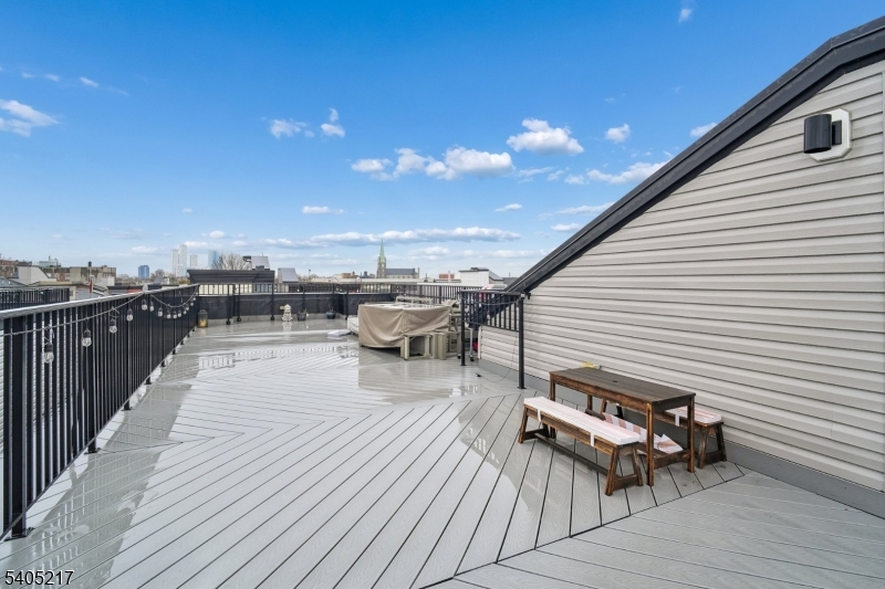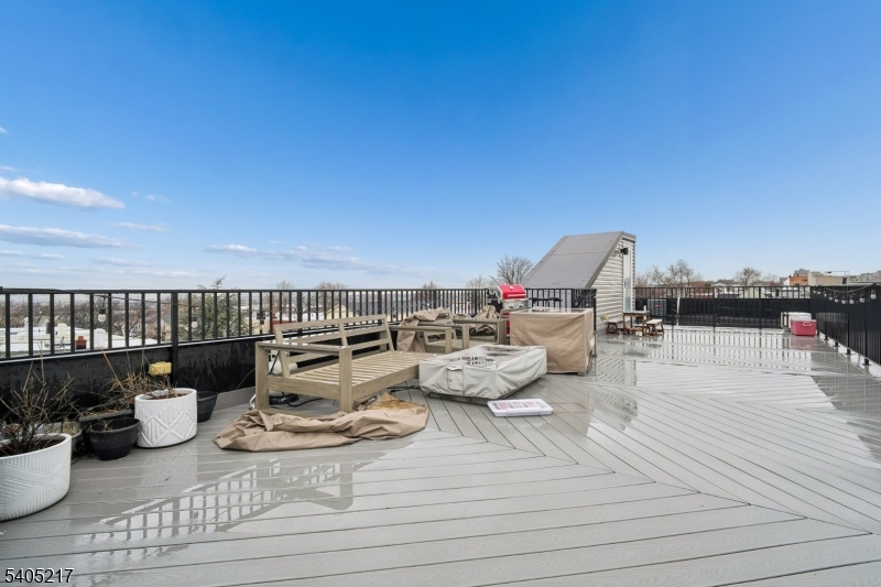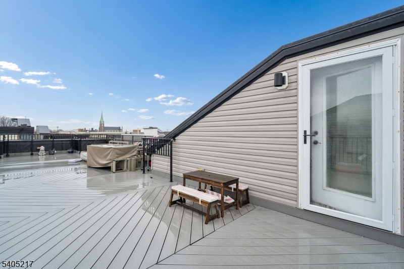 Move right into this stunning condo! Featuring three bedrooms, two baths, parking for two cars, wide crown molding, hardwood floors, custom kitchen and an island with quartz countertops, stainless steel appliances and a wine cooler. Gorgeous spa-like baths with multi jets and shower sprays. Pella transom windows for generous natural light, tankless hot water system, central vacuum, camera security and video intercom door bell. Private 750 square foot rooftop terrace with sound speakers, electric, water and gas line increasing your outdoor enjoyment and eastern NYC view and mountain vistas to the west. Located in JC Heights on a residential city street and low HOA. Conveniently close to NYC transportation, bus to Journal Square PATH or a stroll through the park to the Light Rail Station.