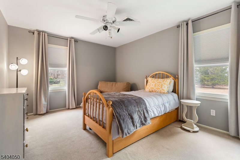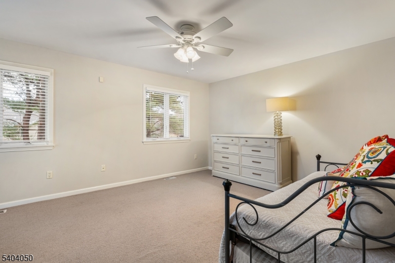 Nestled on a serene cul-de-sac in one of Readington’s most coveted neighborhoods, this impeccably maintained 4,334 sq. ft. residence offers 4 bedrooms & 3.5 baths plus an in-law suite. The heart of the home is a spectacular, expanded kitchen featuring vaulted ceilings, quartz countertops, recessed lighting, updated stainless-steel appliances, a breakfast bar, bar sink, generous pantry & abundant cabinetry. A sliding door opens to a beautifully landscaped paver patio with pergola perfect for outdoor entertaining. Adjacent to the kitchen is the in-law suite with full bath, laundry, hallway with closet & private entrance. The elegant formal dining room showcases rich hardwood floors, crown & chair moldings. The sunlit living room boasts hardwood floors, crown molding, picture window and double French doors leading to a family room with dramatic vaulted ceiling & an elegant brick fireplace. Upstairs, a loft overlooks the family room & connects to four spacious bedrooms with wall-to-wall carpet over oak hardwood floors. The primary suite includes a private sitting room/office, vanity dressing area, walk-in, linen & standard closets. Additional highlights: Partially finished basement with recreation space, workshop, & storage, natural gas whole-house generator, dual-zone gas HVAC, mud room with closet leading to a two-car garage. Set on nearly two acres of manicured grounds with storage shed, this is an exceptional property in perfect condition.