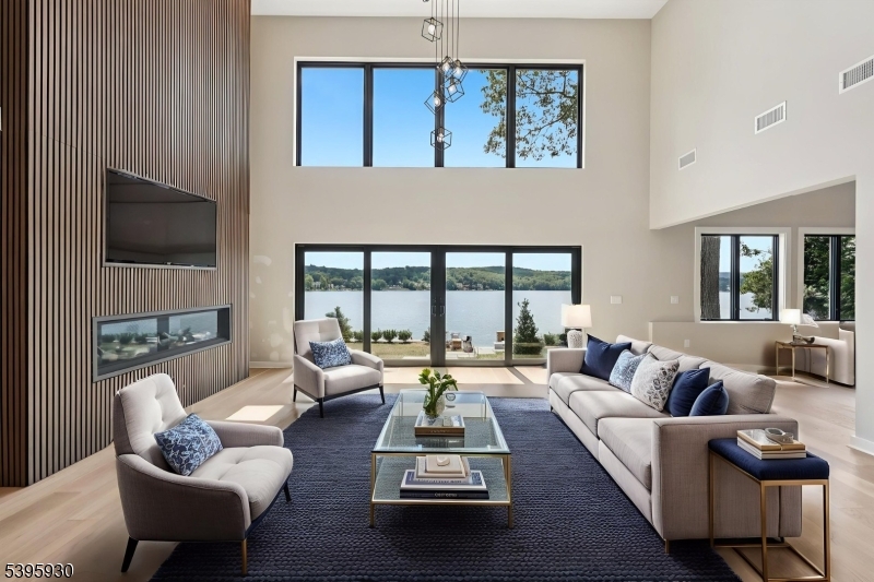 Newly Built in 2024 from the ground up!Live the dream in this spectacular lakefront property,perfectly situated to capture mesmerizing water vistas.This custom-built home features 5 spacious bedrooms,4.5 luxurious baths,a full basement,offering ample space for all your desires-from a home theater to a private gym.Enjoy seamless indoor-outdoor living with direct access to the lake,perfect for boating,fishing or simply savoring the tranquility of your own private oasis.Every single detail has been thought of,from the spray foam insulation to the Brand new windows&doors to the Versace tile,glass doors & custom vanities.As you walk into the foyer with the 16 ft ceiling & customized chandeliers,you will see the large sliders offering sprawling views of Greenwood Lake.The Custom kitchen offers a beautiful play of green and blue Custom cabinets along with special ordered Quartz countertops and a large Island with a sink for easy preparation or a quick snack at a large overhang.Appliances are top notch along with wine/beverage cooler for entertainment.The dining room offers large windows overlooking the lake with lots of natural light.Main floor has 4 bedrooms with 2 Custom bathrooms in bright colors.Floor is completed by a mudroom&a beautiful powder room. Second floor is reserved for the Primary Bedroom, accompanied by a spectacular private bath which includes a soaking tub, stand up shower and underlying lights. Floor includes an office space/loft with oversized windows.