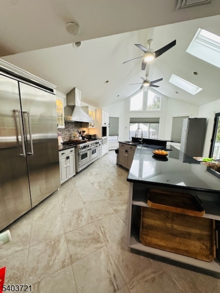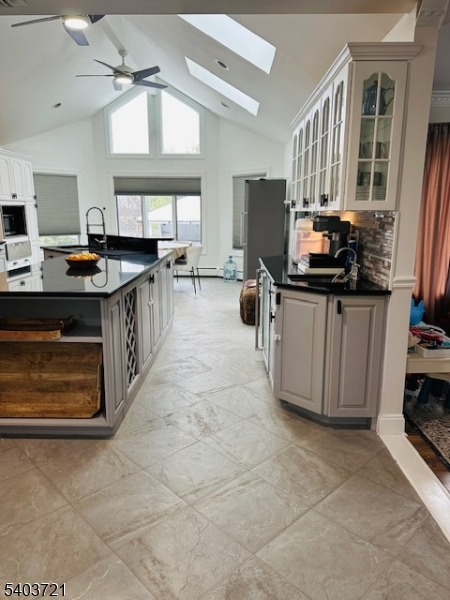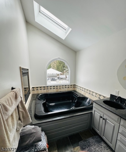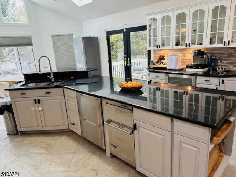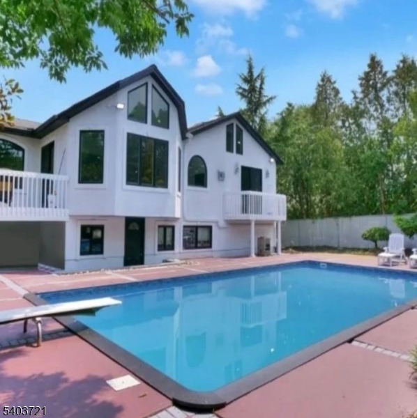 Experience refined living in this stunning contemporary bi-level home, ideally situated in a sought-after Wayne location. Offering 4 bedrooms and 3 full baths, this residence is thoughtfully designed for both everyday comfort and upscale entertaining. The entry foyer leads to an elegant living room highlighted by expansive windows that bathe the space in natural light. A formal dining room seamlessly transitions into a show-stopping kitchen featuring soaring vaulted ceilings, bespoke custom cabinetry, premium stainless steel appliances, a center island, wet bar, and a separate dining area. French doors open to a rear deck overlooking the private backyard oasis. The luxurious primary suite is a true retreat, showcasing a fireplace, walk-in closet, private backyard access, and a spa-like en-suite bath complete with jetted soaking tub, double vanity, and glass-enclosed stall shower. An additional bedroom and full bath complete the main level. The ground level offers an expansive family room with fireplace and custom dry bar, an additional bedroom, and a full bathroom perfect for guests or extended living. Outdoors, escape to a resort-style backyard featuring an in-ground pool, covered cabana with bar, and a firepit, creating the ultimate setting for relaxation and sophisticated entertaining.