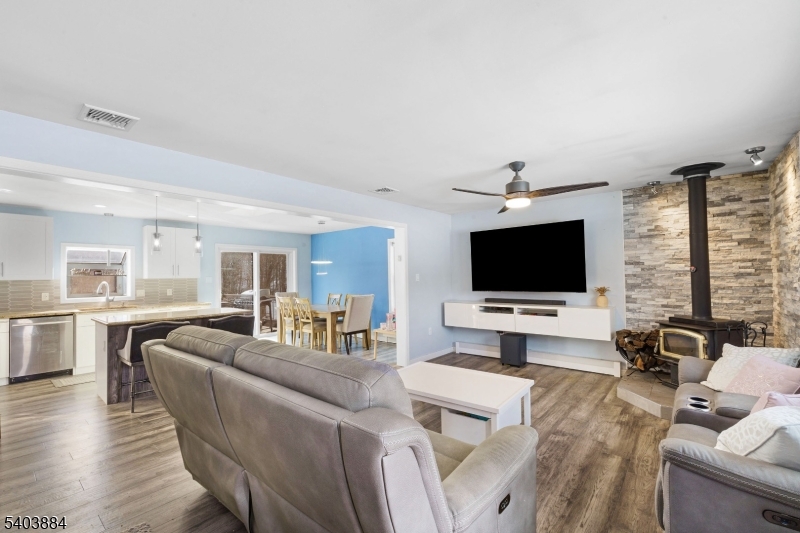 Beautifully updated 3-bedroom, 3 full-bath ranch set on over 1.5 acres of private, picturesque land in highly desirable Vernon Twp. This home offers the perfect blend of modern comfort and serene nature living just minutes from year-round recreation including Mountain Creek Resort skiing, hiking trails along the Appalachian Trail, golf, and convenient shopping and dining as well as less than a 10 minute drive to Warwick for wineries and dining. Inside, enjoy a bright open-concept kitchen and living area, ideal for both everyday living and entertaining. The living room features a cozy wood-burning stove, while the updated kitchen boasts a center island, modern finishes, and ample storage. The spacious primary suite is a true retreat, offering a full ensuite bath with dual vanities, a stall shower, walk-in closet, and charming Romeo & Juliet balcony. Two additional bedrooms and full baths provide comfort and flexibility. The fully finished, oversized walk-out basement adds exceptional living space and includes its own full bath, perfect for guests, a home office, gym, or recreation room. Step outside from the kitchen to a large deck overlooking the private backyard, ideal for entertaining or relaxing in a peaceful natural setting. Additional highlights include a 2-car garage, patio from basement, expansive driveway, new furnace + new A/C condenser. A rare opportunity to enjoy space, privacy, and modern updates while staying close to outdoor adventures and everyday conveniences.