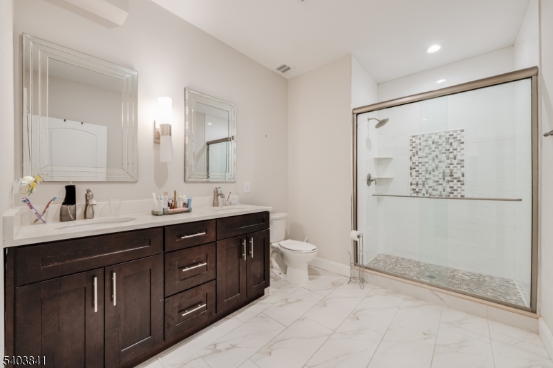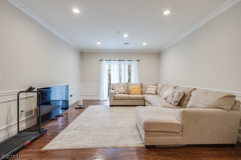 MOVE-IN READY 2 BED/2 BATH BRANCHBURG CONDO CLOSE TO EVERYTHING! Just off 202 & under 5 miles from Bridgewater Commons Mall, heart of historic Somerville w/ NYC train & minutes from all the shops & services you’d ever need, this pristine first floor condo is in a quiet, modern building w/ underground garage parking. Enjoy security code access to large lobby & before stepping into a bright open floor plan w/ beautiful hardwood floors, crisp white wainscoting w/ pillars & soaring ceilings. The heart of this unit is the modern Kitchen, Dining & Living areas that blend seamlessly to provide the perfect ambiance for leisure & comfort. Updated Kitchen shines with white cabinetry, quartz countertops, large island with nicely contrasted black base & SS appliances including gas range w/ griddle, dishwasher, microwave & French door/bottom freezer fridge. Dining area w/ chandelier leads into Living Room with plenty of room for seating & access to private balcony through sliding French doors. Working from home is a breeze with dedicated office/den off of the Kitchen. Relish the in-unit Laundry Room w/ extra storage closet. Hallway Full Bath has tub/shower combo & quartz vanity & leads into large Bedroom with double windows. Opposite side offers gorgeous private Primary Suite w/ huge storage closet & Full Bath w/ double quartz vanity & tiled walk-in shower, Walk-in Closet & serene Bedroom. Additional hallway storage unit available on the same level. Plus only a mile to Duke Island Park!