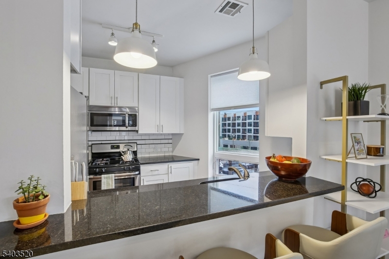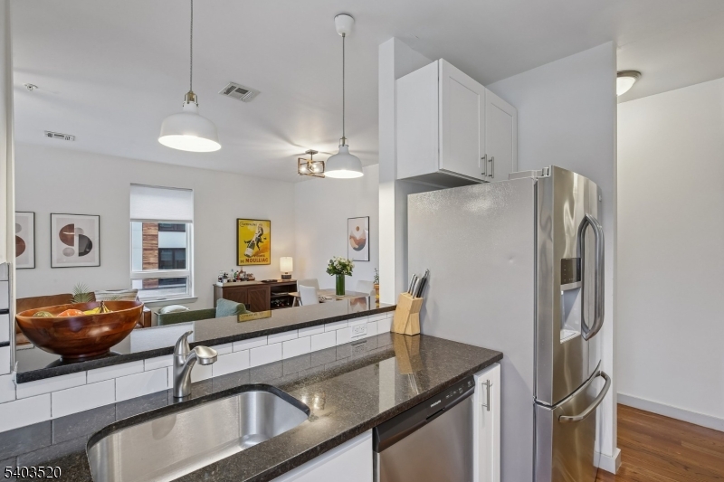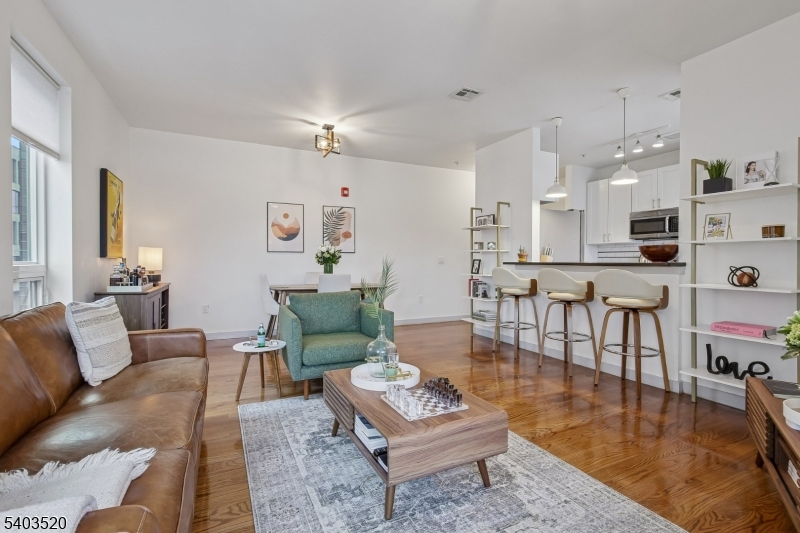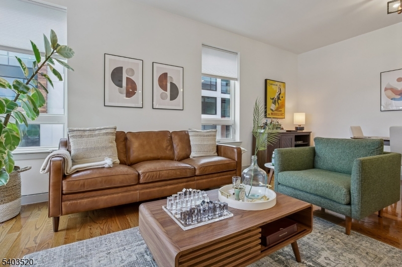This Modern and Stylish corner unit is awash in sunlight and is a “Commuter’s Dream,” steps to NJ Transit and 30 min into NYC! Perfect for a “lock and leave” lifestyle for Buyers looking for turnkey condition, privacy & convenience. Gleaming wood floors lead you into the home down the hall to the open Kitchen with SS appliances, black granite countertops, subway tile & a 6 ft breakfast bar open to the spacious Living Room and Dining Area. The Primary BR features an accent wall with bedside sconce reading lights,walk-in closet, multiple exposures, and both the luxurious Ensuite Bath and Full Hall Bath are freshly painted and feature new bidet seats. Down the hall you’ll find Bedrooms 2 & 3–Flexible space ideal for a work from home Executive Suite, Guest Room, Nursery or Den. All of the bedrooms feature newer carpet. In-unit LG Washer and Dryer (’25), Walk-in Hall Closet/Pantry and 9 Ft ceilings throughout add to the appeal. Amenities include: Resident Lounge, Secure Building/Parking Garage, Fitness Center Access @32 Linc, video intercom & an Elevator. LEED certified building features Nest Thermostats,Energy Efficient lighting, windows, HVAC & Tankless Water Heater This Pet-friendly building is only a quick 30 min train ride into NYC, minutes to Newark Airport or nearby hiking trails and is close to the vibrant downtowns of Montclair, and South Orange downtowns- this rare end unit offers comfort, style, convenience and value-enjoy a “Jersey City Lifestyle at half price!