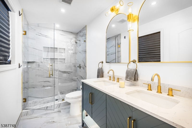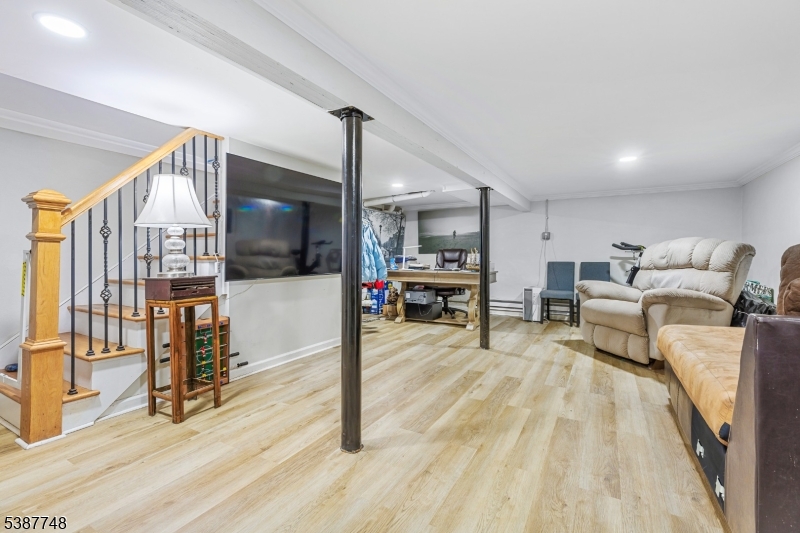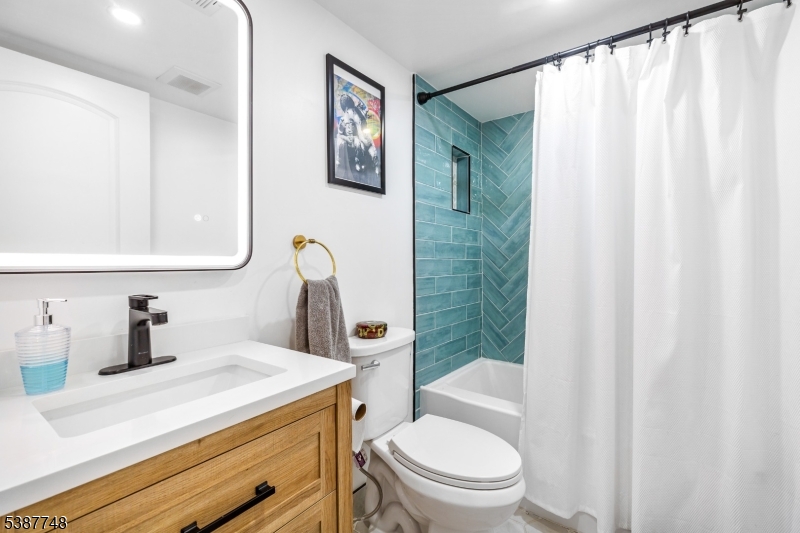 This home has undergone a complete renovation, offering modern finishes, thoughtful design, and move-in-ready living throughout. This 4-bedroom, 3 full bath home features a stunning kitchen with quartz countertops, a waterfall island, sleek cabinetry, stainless steel appliances, and sliding glass doors opening to a serene backyard oasis. The open-concept main level showcases wide-plank oak floors and sun-filled living and dining spaces. Upstairs are four spacious bedrooms, including a tranquil primary suite with a walk-in closet and a spa-inspired shower finished in marble and porcelain tile, along with a second full bath and conveniently located laundry. A finished lower level offers flexible bonus space ideal for a home office, gym, or playroom. Outside, enjoy a newly paved driveway, oversized garage, and a private backyard retreat designed for entertaining or relaxing. Ideally located near NYC transportation, major highways, and top-rated schools, this move-in-ready home delivers the perfect balance of luxury and convenience.