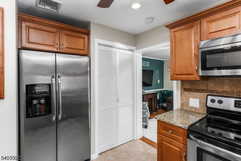 Turn key ready! Welcome to this meticulously maintained 3-bedroom, 1.5-bath ranch located in the desirable Shore Hills section of Landing. Hardwood floors and beautiful handcrafted trim flow throughout the home. The kitchen features granite countertops and stainless steel appliances. The primary bedroom offers cathedral ceilings and a sliding door leading to the backyard. The finished basement provides versatile additional living space, ideal for a family room, home office, or gym. Step outside to a fully fenced backyard perfect for summer and fall evenings, complete with a large deck that leads to a pergola and stone fire pit. A newer roof (2023) adds peace of mind. Public water and sewer, central air, and natural gas in the street! Look no further, this move-in-ready home truly has it all!