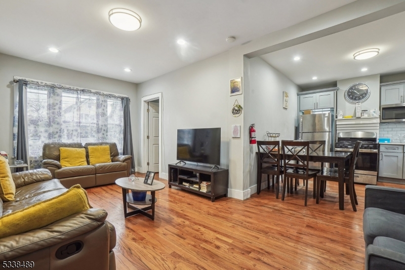 Income producing property: 4 brs / 2.5-bath colonial is conveniently located within walking distance of NYC buses. The basement includes a half bath and a flexible bonus room that can serve as a fourth bedroom. Situated in a light commercial area, the property also features an income-generating business yielding $1,250 per month, an excellent opportunity for passive income and mortgage offset. Current annual rent roll $39,000 (potential annual rent roll $48,000 / annual taxes $13,546). Unit 1 – The first level boasts an updated eat-in kitchen with quartz counter tops, gray shaker cabinets, crown molding, and S/S appliances. This level also comes with an expansive living room accommodating any oversized furniture and a bedroom, for those who prefer to limit their use of stairs. The second level comes with two generously sized bedrooms with huge closet space. The full bathroom includes a luxurious soaking tub with built-in shower accessories as well as an elegant woodgrain vanity. This thoughtfully designed bathroom serves as a serene retreat, perfect for unwinding after a long day. The basement in addition to the half bath and possible 4th brs, has direct access to the spacious attached garage. Additional highlights of this magnificent home include pristine h/d floors throughout, recessed lighting, updated plumbing and electrical systems. For those who commute, proximity to NYC transportation, 15 Minutes from Newark Airport and 35 Minutes from Manhattan